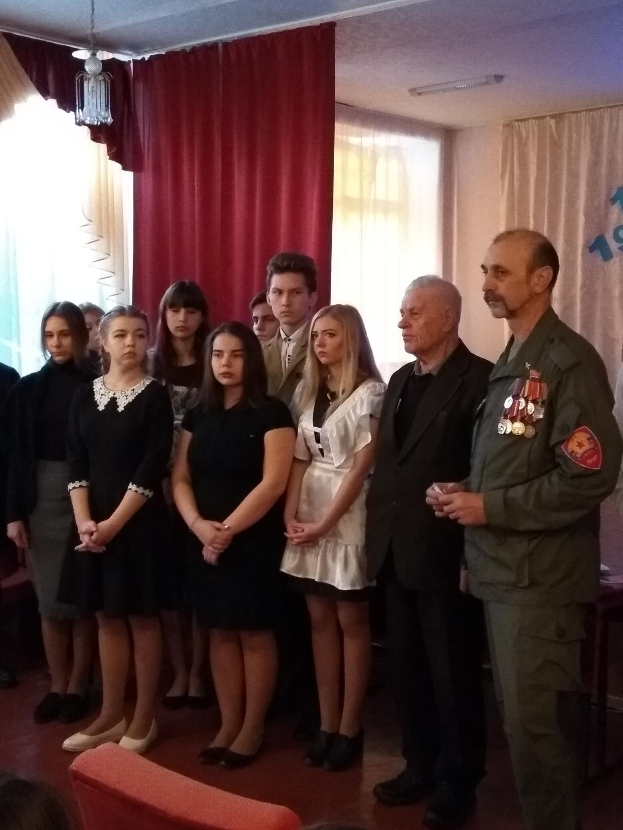 15 февраля 2018 года в ГОУ ЛНР «Перевальская гимназия № 1» состоялось мероприятие, посвященное памяти героям Афганистана. Совместно с учениками 9-11 классов состоялась встреча, на которой присутствовали гости.: Жур Олег-воин-интернационалист, афганец, Джурбей Владимир Иванович – ветеран, заместитель председателя совета ветеранов г. Перевальска. Так же, на мероприятии присутствовали ученики 8-9 классов.